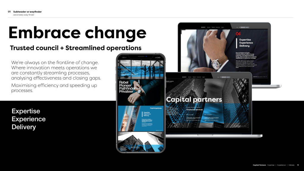 A comprehensive PowerPoint template that’s easy to use but has enough design input to keep things impactful.